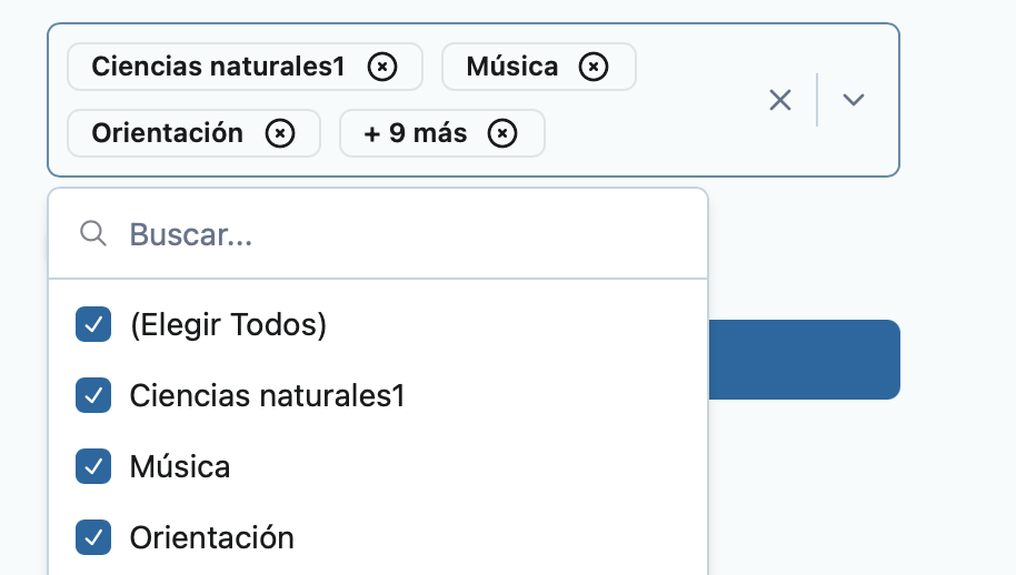 - Selección Múltiple: Permite seleccionar varias opciones que se muestran como badges.